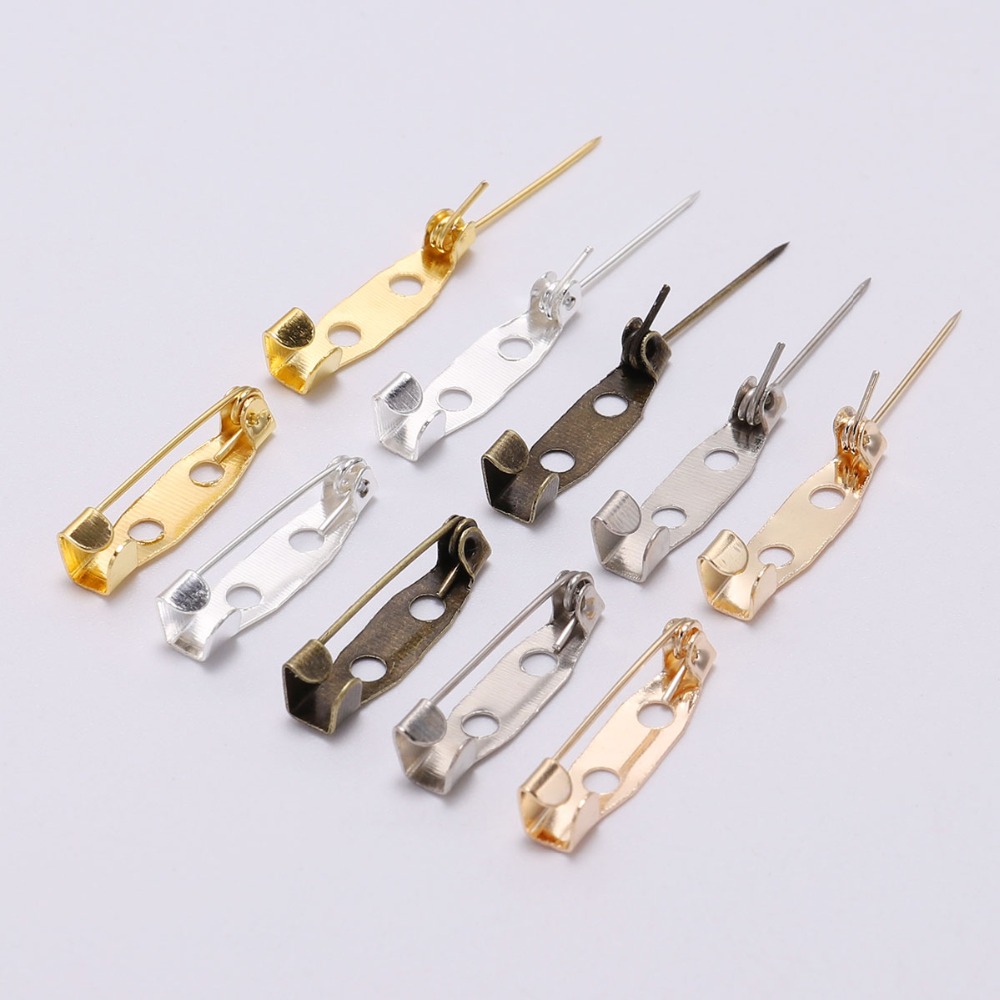 50pcs/lot 15 20 25 35 mm Silver color KC Gold Brooch Clip Base Pins Safety Pins Brooch Settings Blank Base For DIY Jewelry Making